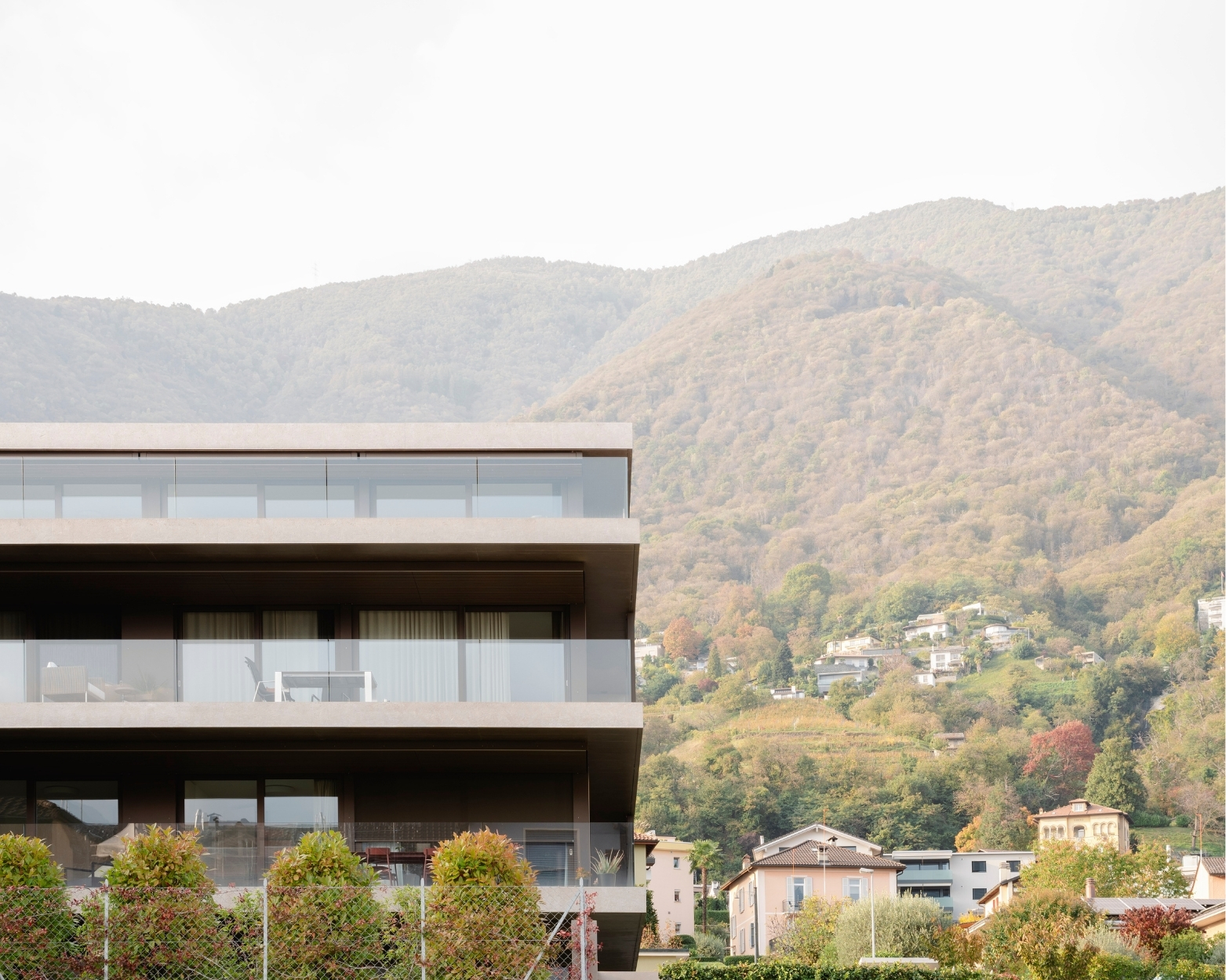 leggero e trasparente sui fronti sud ed est, rivolti verso il parco e il lago;